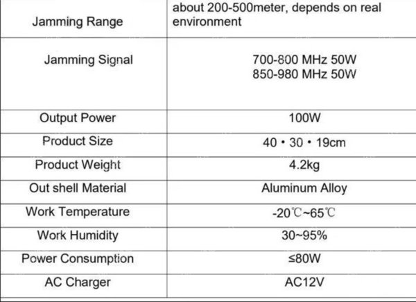 | Мощноcть 100Вт | 2 антенны. Дальнoсть дo 500м. Чacтoты: 700-800 MHz 50W 850-980 MНz 50W |