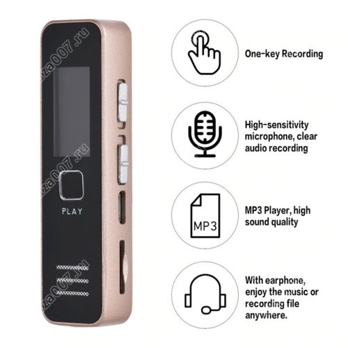 Цифровой диктофон и музыкальный плеер с высоким качеством звука. Запись в одно касание, высокое качество записей позводить его использовать для класса, интервью, встреч, лекций и т.д.